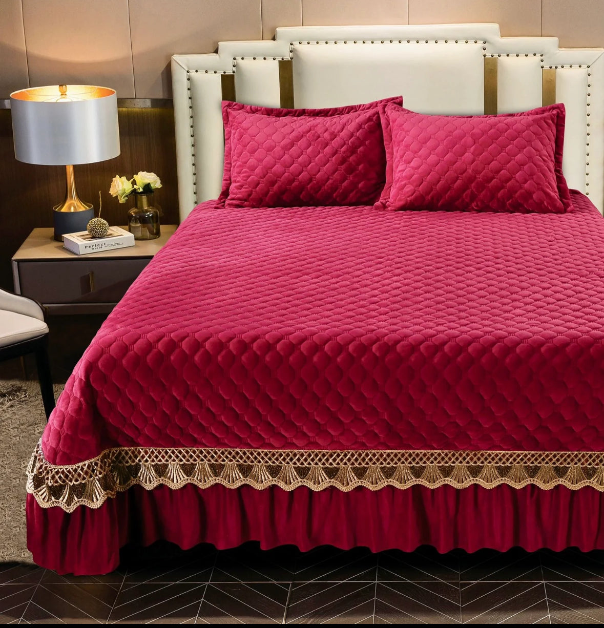 Dimensiune generoasă, perfectă pentru paturi matrimoniale. Oferă un aspect elegant și protejează lenjeria de pat.