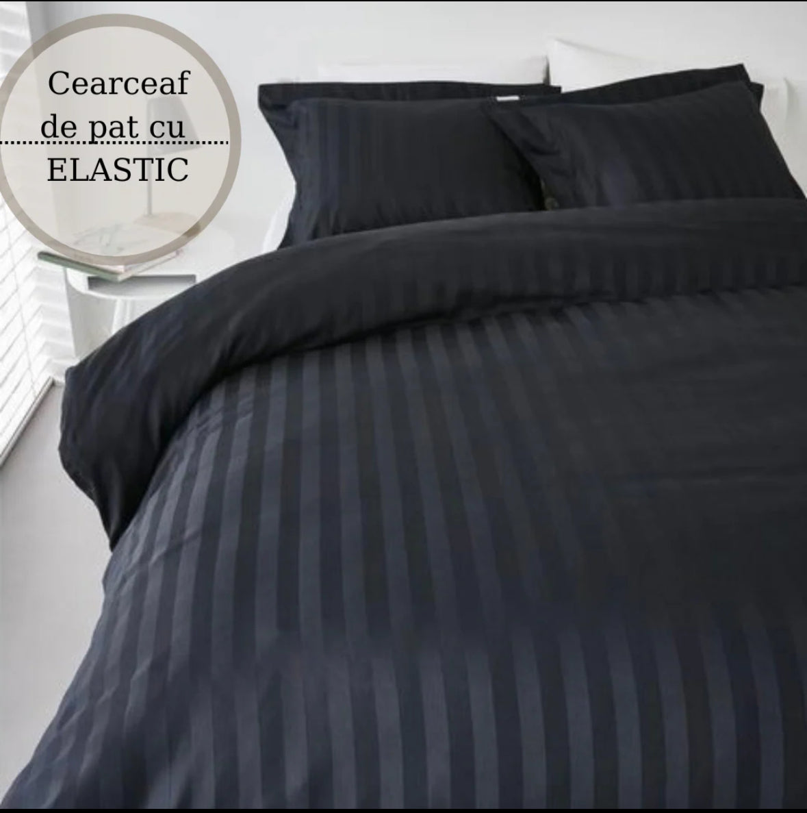 Lenjerie de pat dublu,180/200,Damasc Finetat DeLuxe,cu ELASTIC,6 piese
