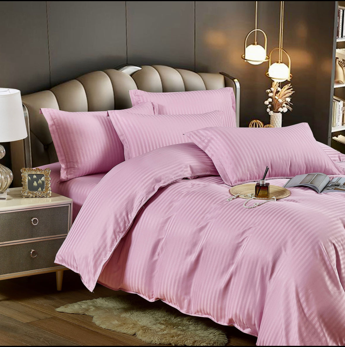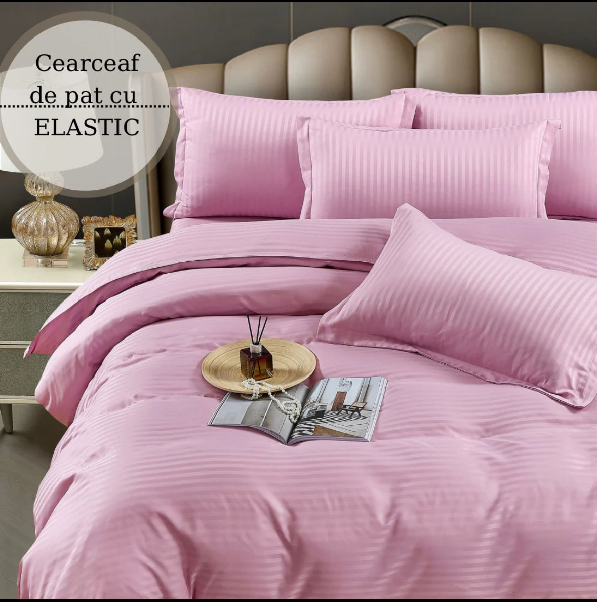 • Material: 100% bumbac Damasc – țesătură de lux, rezistentă și elegantă, cu dungi fine satinate