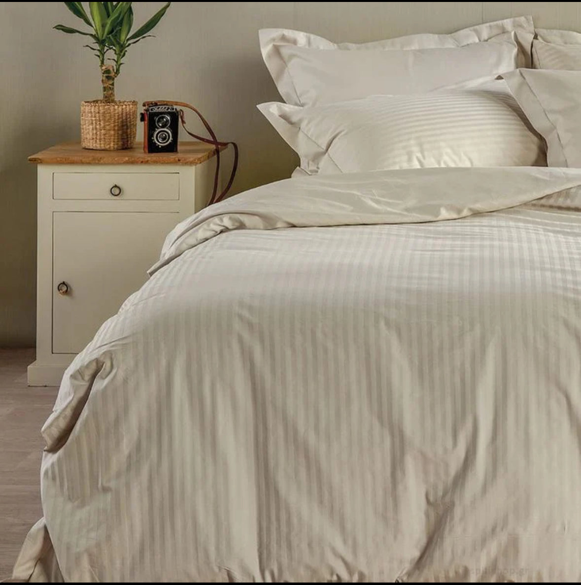• Material: 100% bumbac Damasc – țesătură de lux, rezistentă și elegantă, cu dungi fine satinate
