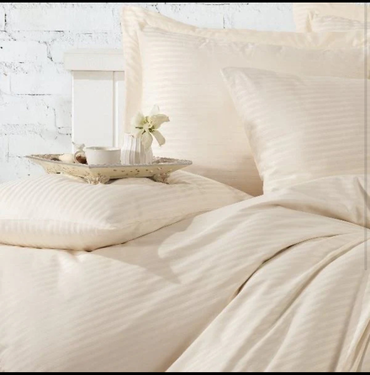• Material: 100% bumbac Damasc – țesătură de lux, rezistentă și elegantă, cu dungi fine satinate
