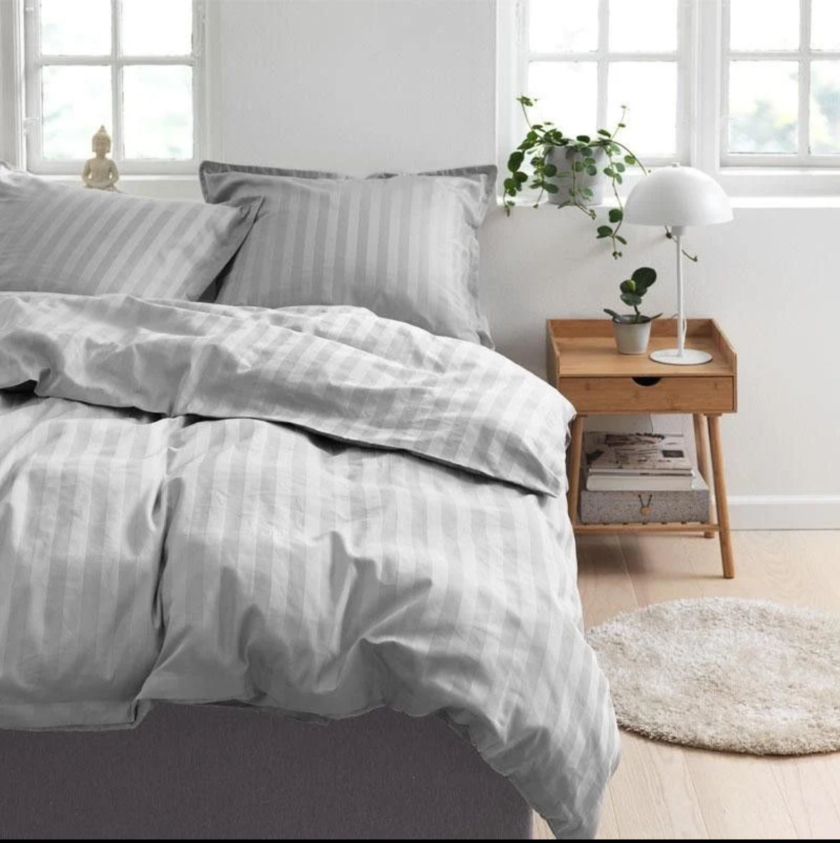 • Material: 100% bumbac Damasc – țesătură de lux, rezistentă și elegantă, cu dungi fine satinate